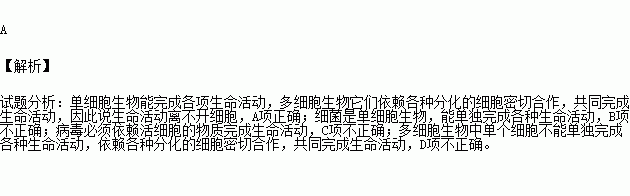 A.生命活动离不开细胞