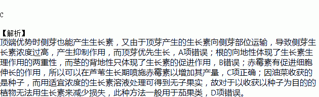 D.油菜开花时因气候原因未能正常授粉,可喷洒适宜浓度的生长素溶液降低损失
