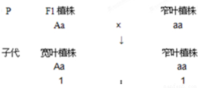 £¨2£©F1Ö²ÖêµÄ»ùÒòÐÍΪAa£¬¿ÉÒԲ⽻ÑéÖ¤£ºAa¡Áaa£¬×Ó´úΪ1Aa(¿íÒ¶)£º1aa£¨ÕÒ¶£©¡£