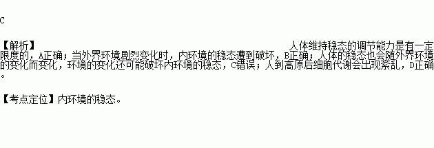 有人到青藏高原后会出现头痛、心跳加速、血压升高等症状。对此现象分析不正确的是( )