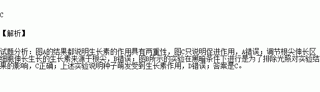 A.图A和图C的结果都说明生长素的作用具有两重性