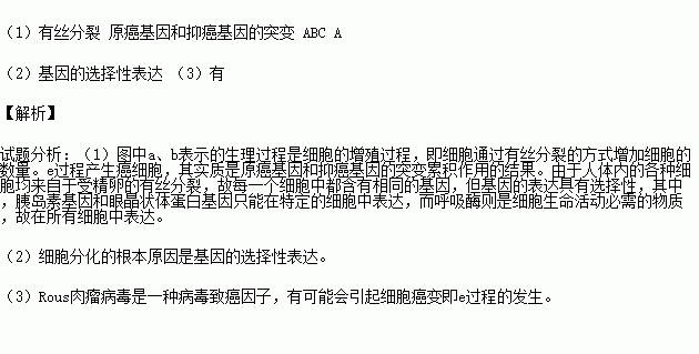 (3)Rous肉瘤病毒 (有、没有)可能引起e过程的发生。