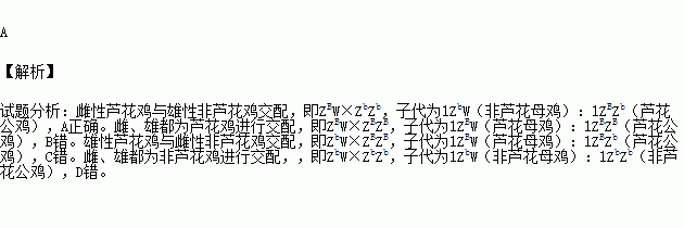 C、雄性芦花鸡与雌性非芦花鸡交配 D、雌、雄都为非芦花鸡进行交配