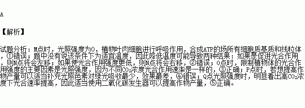 ´óÅïÖÐÖÖÖ²µÄÖ²ÎïÆä¹âºÏ×÷ÓûáÊܵ½¶àÖÖÒòËØµÄÓ°Ï죬ÔÚÏÂÇúÏßͼÖУ¬ÓÐM¡¢N¡¢O¡¢P¡¢QÎå¸öµã£¬¶ÔËüÃǵĺ¬ÒåµÄÐðÊöÕýÈ·µÄÓУ¨ £©
