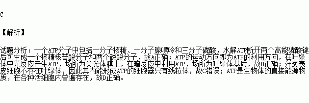 D.ATP是各种活细胞内普遍存在的一种高能磷酸化合物