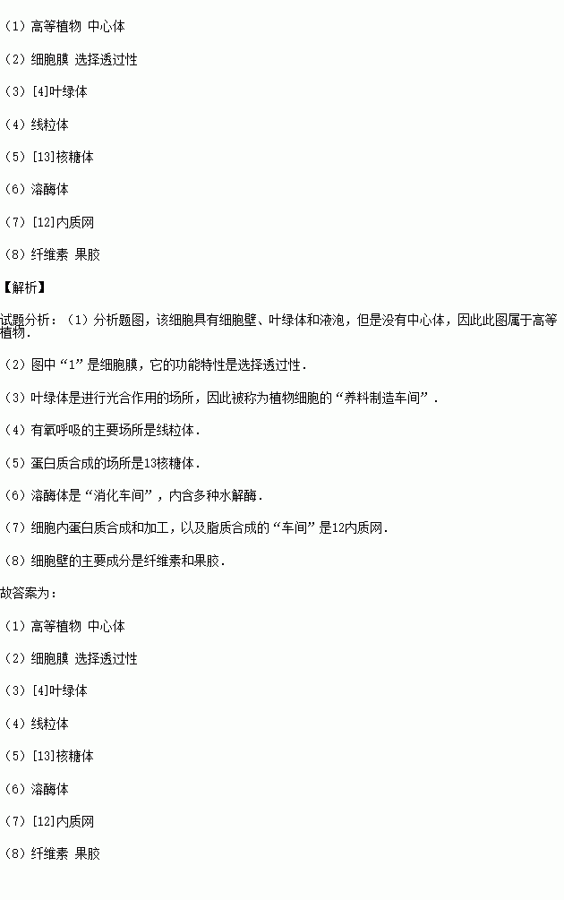 (1)此图属于 (填“高等植物”“低等植物”或“动物”),因为该细胞不具有 .