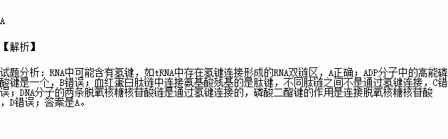 A.tRNA分子中含有一定数量的氢键