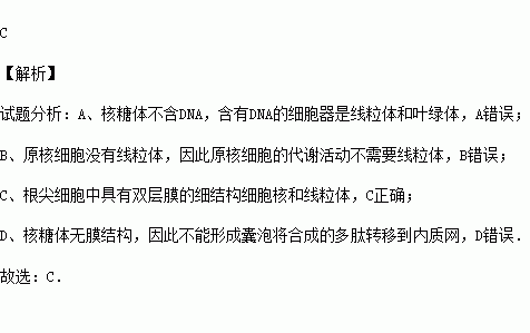 A.含有DNA的细胞器有核糖体和线粒体