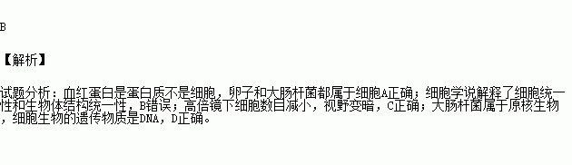 A.卵子、大肠杆菌和血红蛋白并不全是细胞