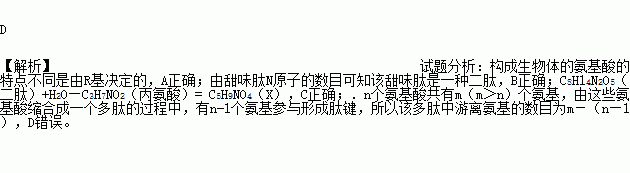 D.n个氨基酸共有m(m>n)个氨基,则由这些氨基酸缩合成的一个多肽中游离氨基的数目为m-n