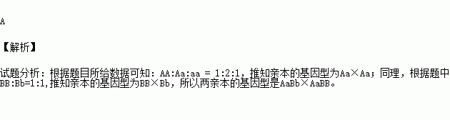 已知豌豆的两对基因(A、a和B、b)分别位于两对同源染色体上,在某次杂交产生的子代中,基因型及比例如下,则两亲本的基因型是