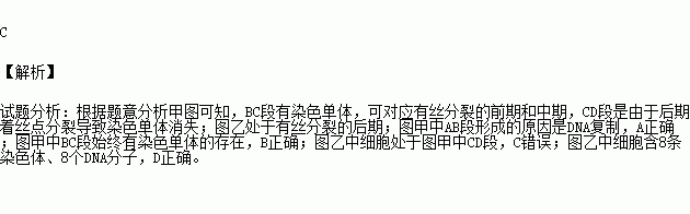 D.图乙中细胞含8条染色体、8个DNA分子