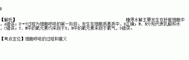 下图表示人体内主要能源物质氧化分解的部分途径,其中X、Y、M、N代表物质。下列叙述正确的是