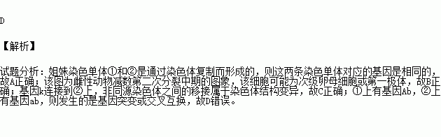 D.若①上有基因Ab,②上有基因ab,则发生了同源染色体交叉互换