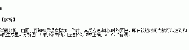 图一为温度对酶促反应速率影响,图二中的实线表示在温度为a时生成物量与时间的关系。则当温度增加一倍时生成物量与时间的关系是