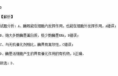 D.酶是活细胞产生的有催化作用的有机物