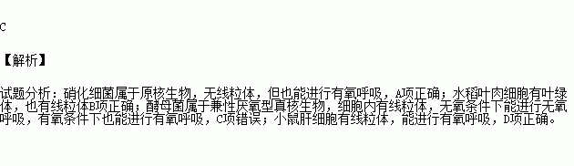 A.硝化细菌无线粒体,也能进行有氧呼吸