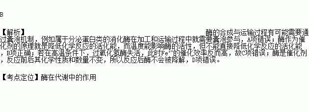 B、酶能降低化学反应的活化能,而温度不能降低化学反应的活化能