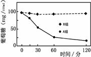 ③给A、B两组老鼠分别注射等量的适宜浓度的胰岛素溶液,在120分钟内测定老鼠血液中葡萄糖浓度,得到结果。