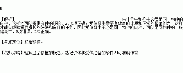 A.供体母牛必须是同一物种的良种