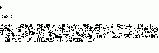 C.若X是RNA,Y是DNA,则Z是RNA聚合酶