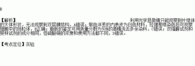 A.利用光学显微镜可观察到叶绿体的双层膜