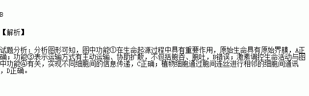 B.功能③表示运输方式有主动运输、被动运输和胞吞、胞吐