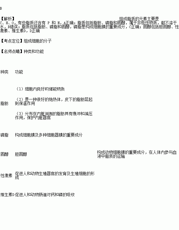 D.脂肪、性激素和VD都属于脂质
