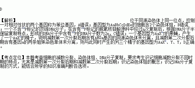 D.一个基因型为AaXbY的果蝇,产生了一个AaXb的精子,则与此同时产生的另三个精子的基因型可能是AaXb、Y、Y