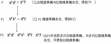 (4)已知白眼基因由位于X染色体上隐性基因控制,且亲代果蝇在下一代成熟前就自然死亡。实验室只有历代杂交都是红眼的雌雄果蝇,现从某科研所引进一白眼雄果蝇。假设你是某研究小组成员,想利用该白眼雄果蝇通过杂交的方式获得白眼雌果蝇,应该如何设计杂交方案?请用简要遗传图解加文字说明的方式表示。(图解写出三代即可)