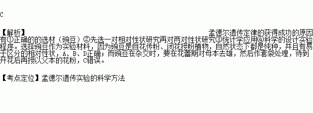 对孟德尔选用豌豆做实验材料并获得成功的原因,下列解释中不正确的是( )