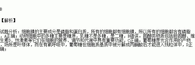 A.脂质中的磷脂是构成细胞膜的重要物质,所有细胞都含有磷脂