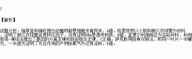 C.孟德尔利用豌豆为实验材料提出了基因的分离定律和自由组合定律