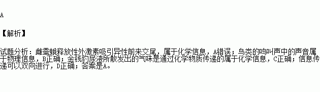 A.雌蚕蛾释放性外激素吸引异性前来交尾属于行为信息