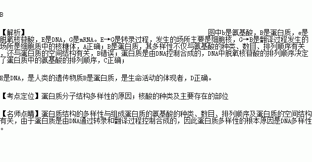 D、E是人类的遗传物质,B是生命活动的体现者