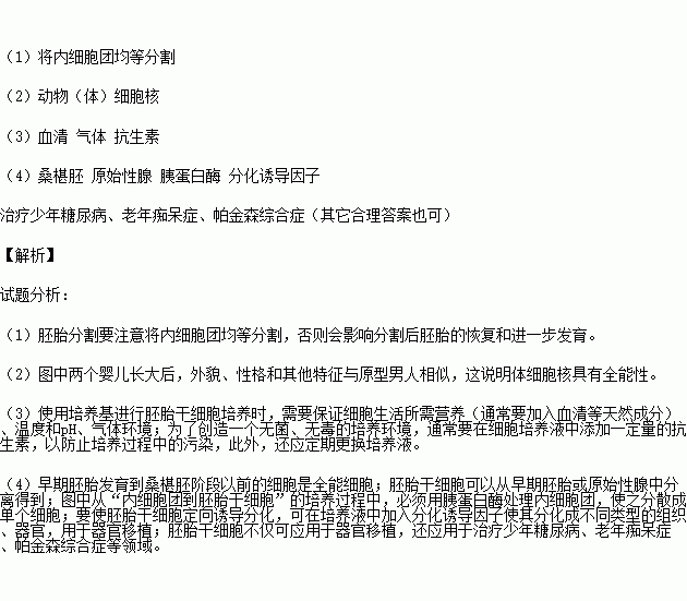 (2)图中两个婴儿长大后,外貌、性格和其他特征与原型男人相似,这说明__________具有全能性。