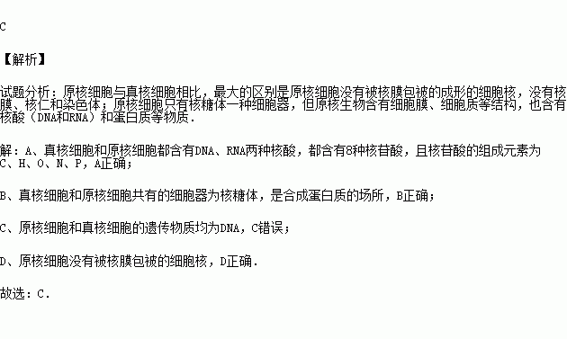 A.两类细胞中8种核苷酸都含有C、H、O、N、P元素