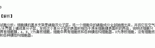 将一个细胞中的磷脂成分全部抽提出来,并将它在空气/水界面上铺成单分子层,结果发现这个单分子层的表面积相当于原来细胞膜表面积的两倍。这个细胞很可能是( )