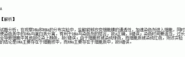 D.该实验的结论是DNA分布在细胞核中,RNA分布在细胞质中
