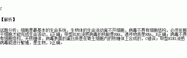 D.甲型H1N1流感病毒属于生物