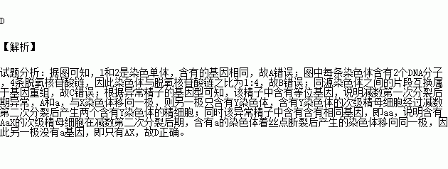 D.若该动物的一个精原细胞产生一个基因型为AaaX的精子,则同时产生的另三个精子是AX、Y、Y