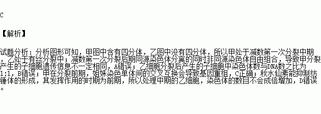 C.甲在分裂前期,姐妹染色单体间的交叉互换会导致基因重组