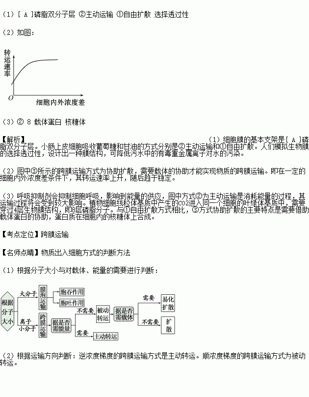 (2)请在下面给出的坐标图上画出与上图中③这种跨膜运输方式对应的曲线图: