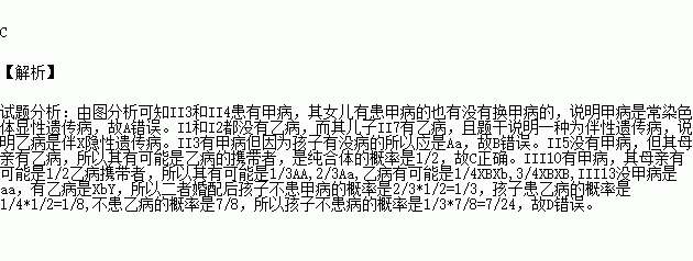 D.Ⅲ10和Ⅲ13结婚,生育的孩子不患病的概率是1/24