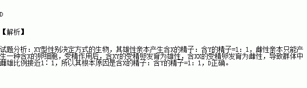 XY型性别决定方式的生物,群体中的雌雄比例接近1∶1,其根本原因是