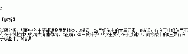 C.存在于叶绿体而不存在于线粒体中的糖类有葡萄糖