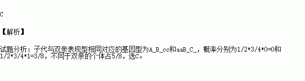 在完全显性条件下,基因型AaBbcc与aaBbCC的两亲本进行杂交(这三对等位基因是独立遗传的),其子代中表现型不同于双亲的个体占全部子代的