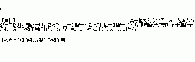 某种高等植物的杂合子(Aa)产生的雌雄配子的数目是