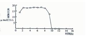 (2)9~10h间,光合速率迅速下降,推测最可能发生变化的环境因素是 ;10h时不再产生ATP的细胞器是 ;若此环境因素维持不变,容器内的O2含量将逐渐下降并完全耗尽,此时另一细胞器即 停止ATP的合成,