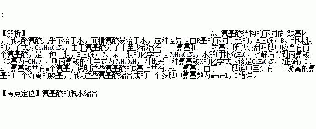 D£®n¸ö°±»ùËá¹²ÓÐm£¨m£¾n£©¸ö°±»ù£¬ÔòÓÉÕâЩ°±»ùËáËõºÏ³ÉµÄÒ»¸ö¶àëÄÖа±»ùµÄÊýĿΪm£n